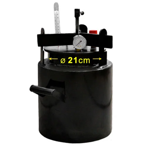 Цей автоклав забезпечує максимально ефективне консервування продуктів завдяки надійному ущільненню кришки. Ви можете бути впевнені в безпеці та якості вашого консервування. Корпус автоклава виготовлений з вуглецевої сталі товщиною 2.2 мм, що забезпечує довговічність та надійність його використання. Найбільш схильні до зносу місця, такі як кришка, дно та горловина, виготовлені з вуглецевої сталі товщиною від 3 мм до 10 мм.