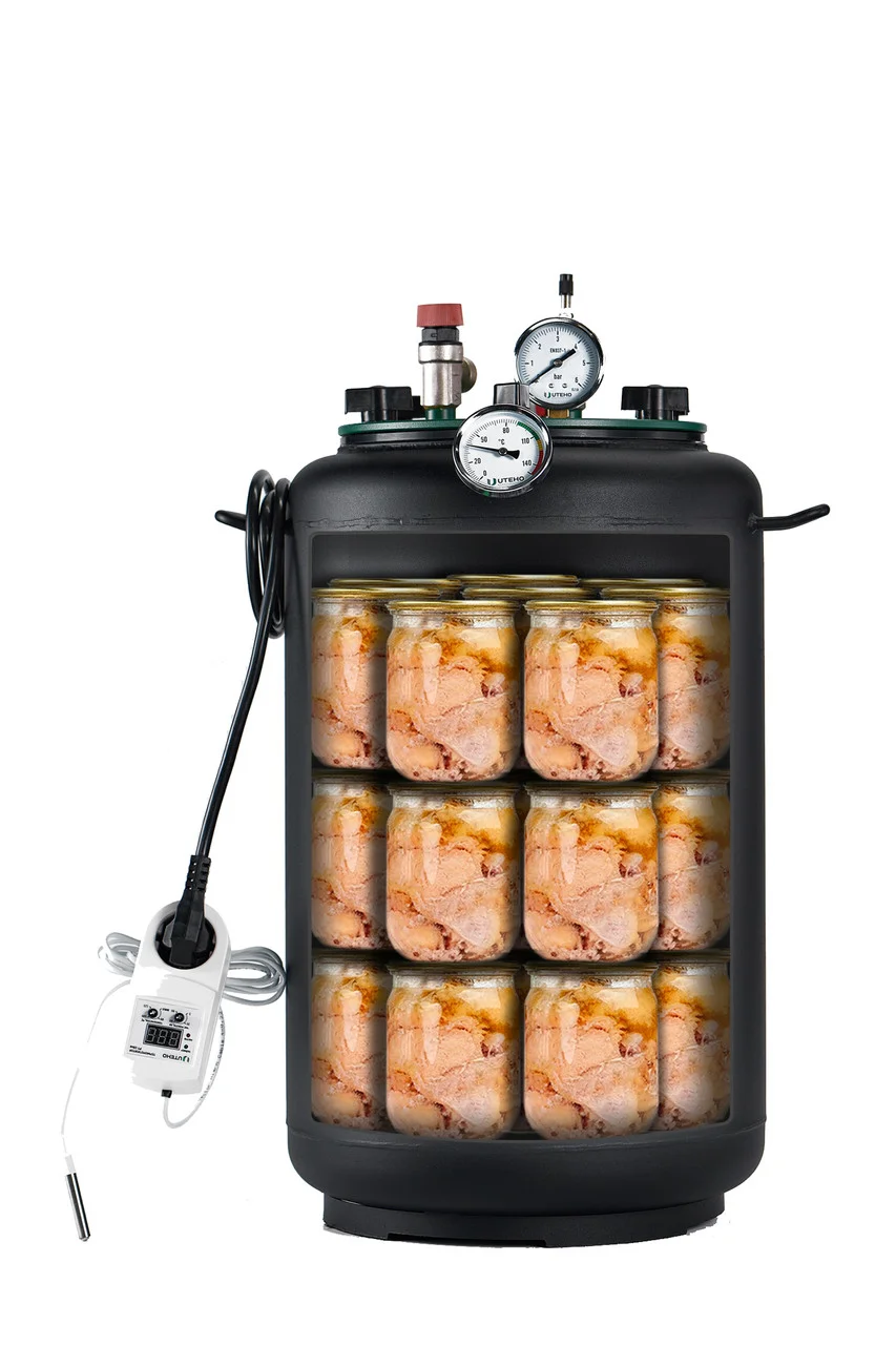 Автоклав побутовий “УТех-24 electro (Універсальний)” ㅡ це сучасний пристрій для стерилізації та консервування з чорного металу. Він призначений для нагрівання від електромережі та зовнішнього джерела тепла, що робить пристрій універсальним. Автоклав чудово підходить для використання в домашніх умовах. В комплект автоклава входить блок керування, який забезпечує консервування в автоматичному режимі з вказаними Вами часом та температурою. Автоклав обладнаний аварійним клапаном ㅡ це робить процес консервування безпечним.
