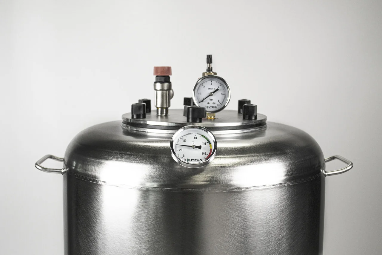 Автоклав промисловий "А100" ㅡ це сучасний пристрій для стерилізації та консервування. Він призначений для нагрівання від зовнішнього джерела тепла та чудово підходить для використання в домашніх умовах. Автоклав обладнаний аварійним клапаном ㅡ це робить процес консервування безпечним.