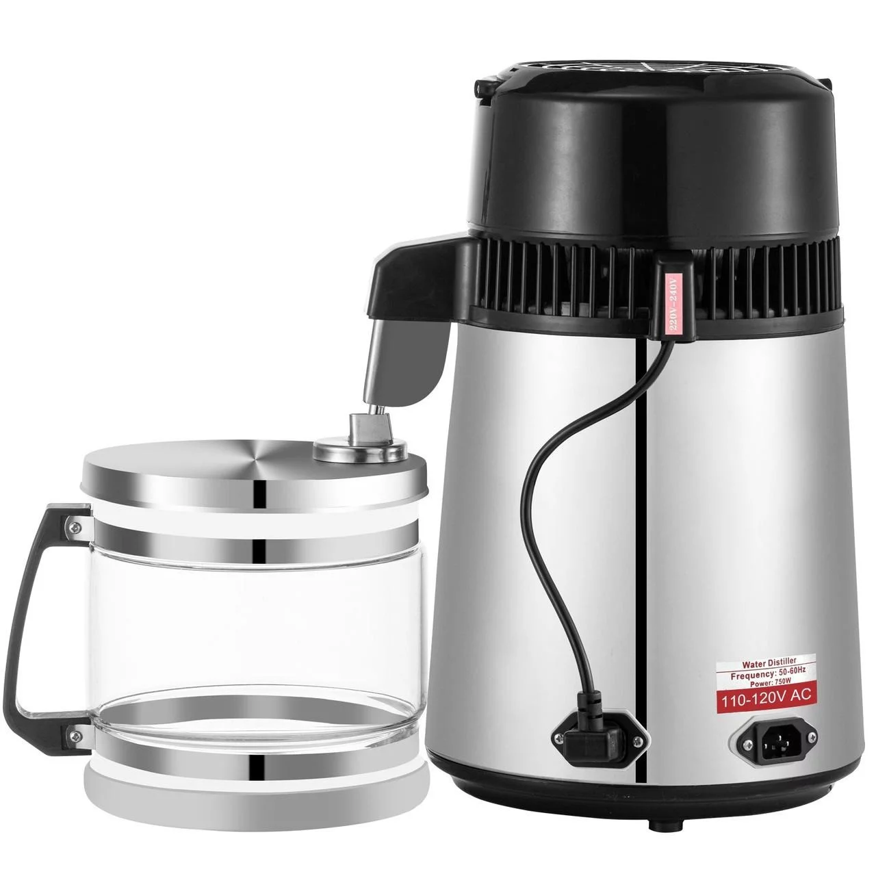 Завдяки алюмінієвій нагрівальній плиті потужністю 750 Вт швидкість дистиляції нашого дистилятора води становить близько 1 л (0,26 галона) на годину, а об'єм дистиляції за 24 години досягає 24 л (6 галонів), з яким вам не потрібно купувати воду у пляшках більше. Боросилікатний графин із силіконовим буфером вміщує 4 л (1,1 галона) дистильованої води.