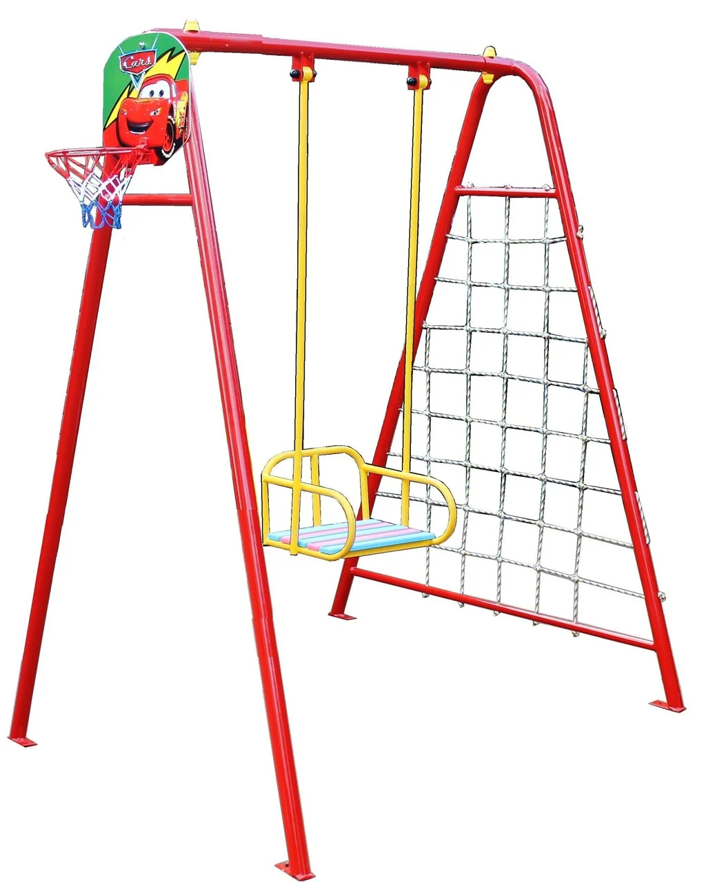 Комплектація: гойдалки, баскетбольне кільце, дартс, гладіаторська сітка, комплект кріплення для бетонування.