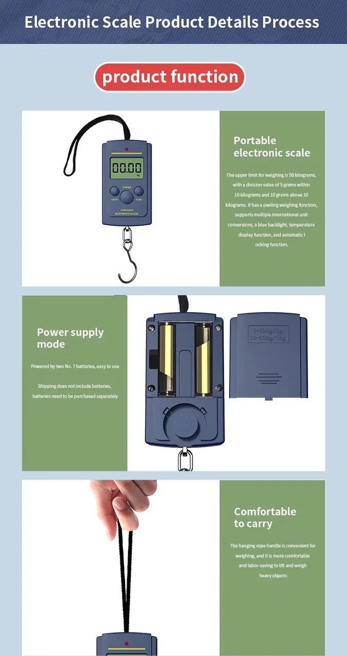 • Багатофункціональність: Ці ваги призначені не тільки для зважування багажу або риби, але також можуть використовуватися для інших цілей, наприклад, для зважування посилок, овочів тощо.