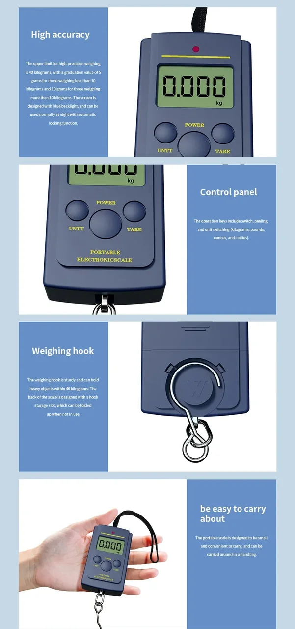 • Висока точність: ваги можуть вимірювати вагу до 40 кг із точністю до 10 г, забезпечуючи точні показання щоразу.