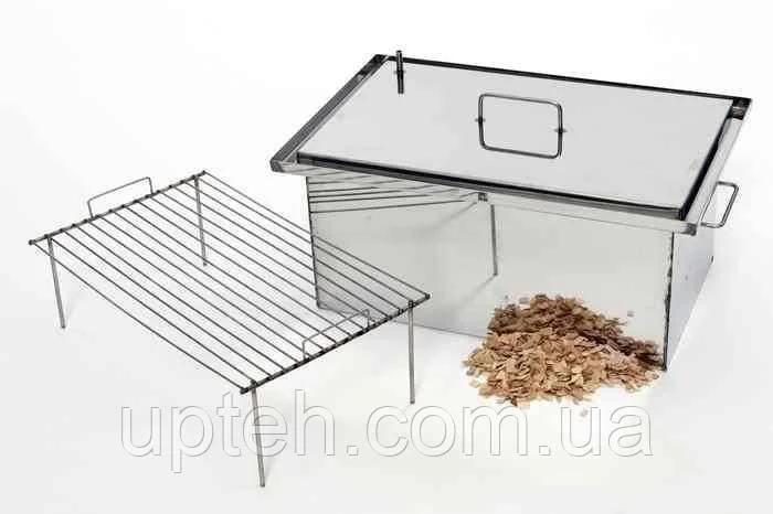 Компактна коптильня для риби та м'яса. Виготовлена з харчової неіржавкої сталі, довжина короба — 40 см. Товщина стінки — 1,5 мм забезпечує довгий термін експлуатації коптильні — понад 10 років (за частого використання).