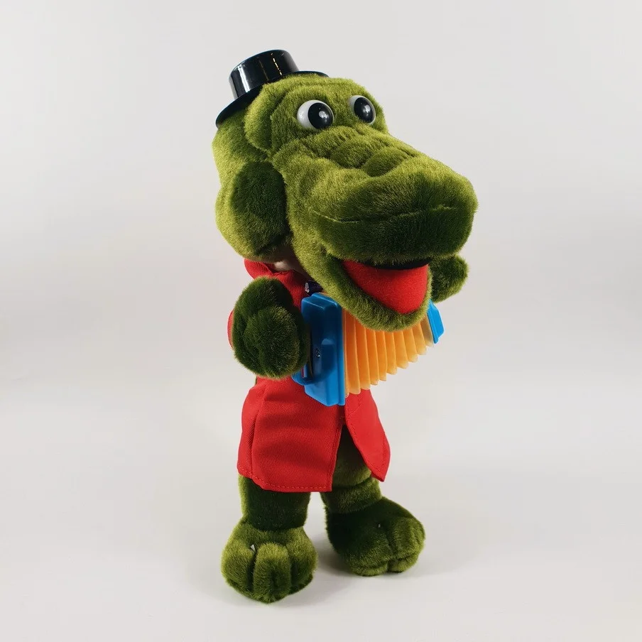 Універсальні якісні м'які іграшки крокодил гена з гармошкою в руках ітресна гарна музична іграшка.