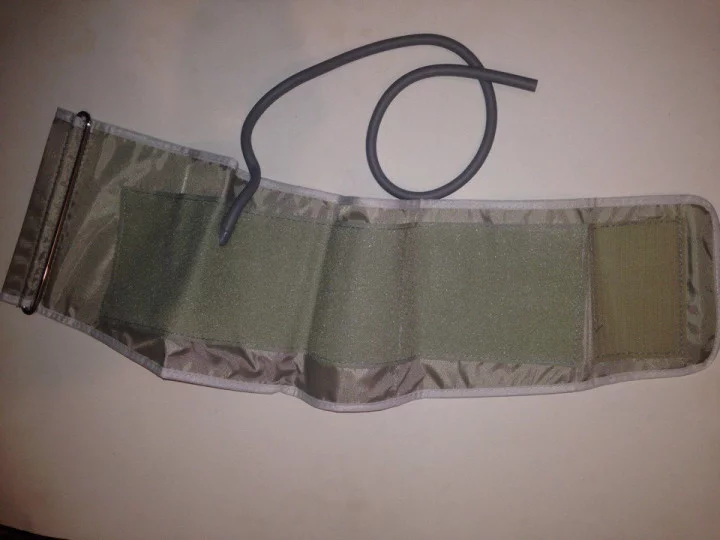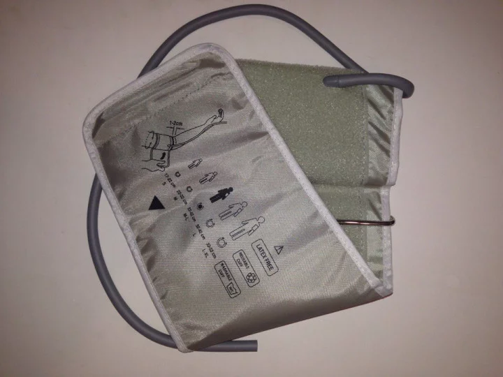 МАНЖЕТА збільшена до приладів для вимірювання артеріального тиску та частоти пульсу автоматичними та напівавтоматичними цифровими тонометрами. Принцип технології манжети полягає в застосуванні внутрішньої м'якої гумової камери, яка створює рівномірний розподіл тиску в руці, що дає змогу знизити неприємні відчуття від стиснення руки. Отже, процес вимірювання артеріального тиску стає комфортнішим і зручнішим для користувача. Має металеве фіксувальне кільце.