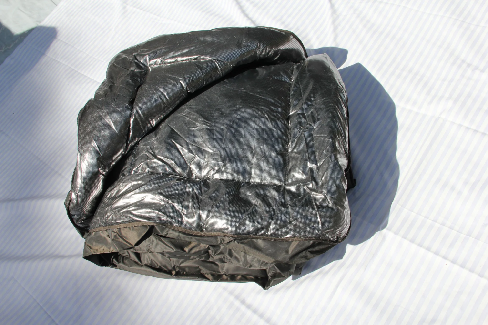Спальник у комплекті з компресійним мішком, для зручного транспортування.