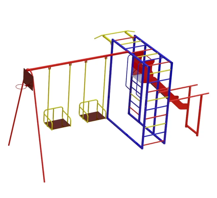 Комплекс спортивно-ігровий з гіркою і двома гойдалками, вуличний.