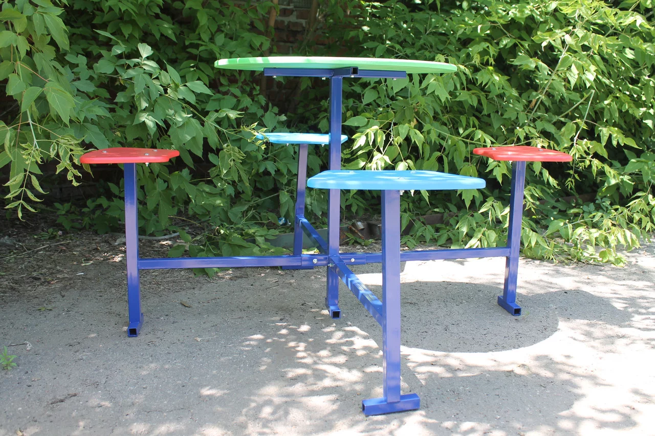 Матеріал: металева конструкція, сидіння - вологостійка пофарбована фанера.