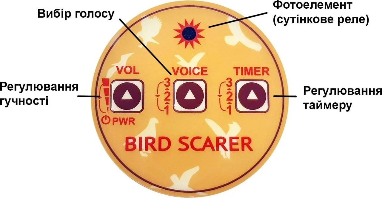 У приладі вбудовано сутінковий реле реагує на зміну часу доби - це дозволяє приладу самостійно включатися при ранній зорі близько 4:30 - 05:00 годин ранку влітку і вимикатися в сутінках ввечері близько 20:00 - 21:00 години вечора коли птахи вже відлітають на ночівлю. Прилад можна застосовувати слід таким способом, щоб фотоелемент не закривався сторонніми предметами і отримував природне освітлення.