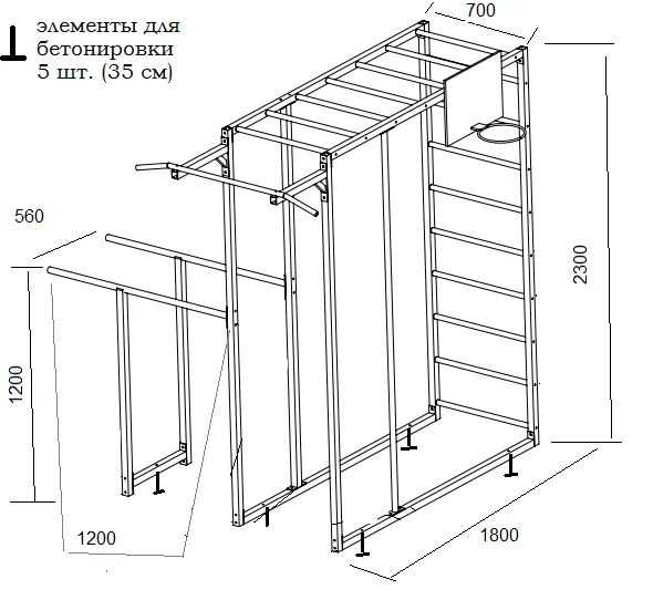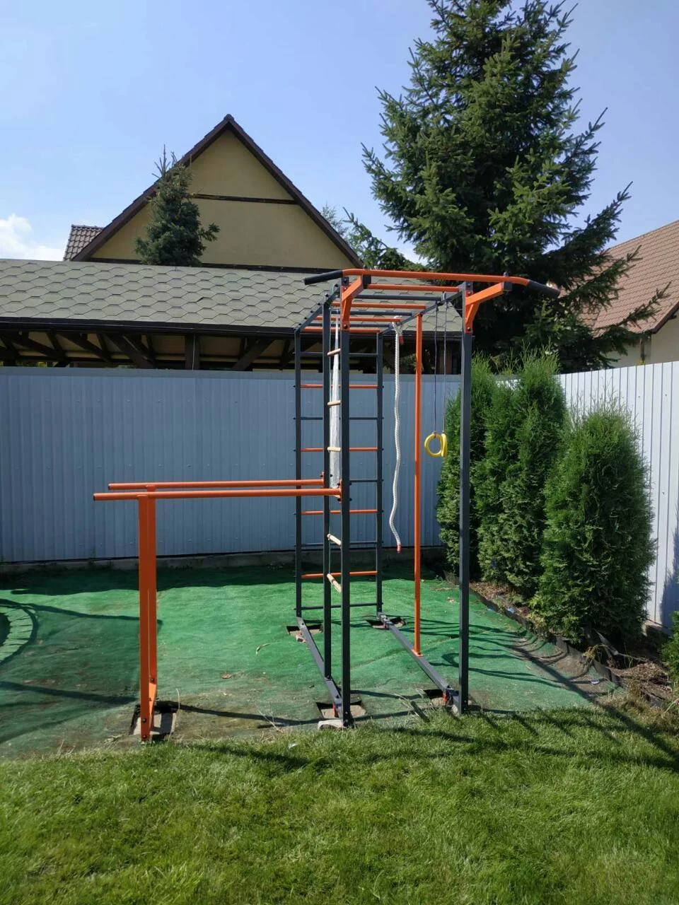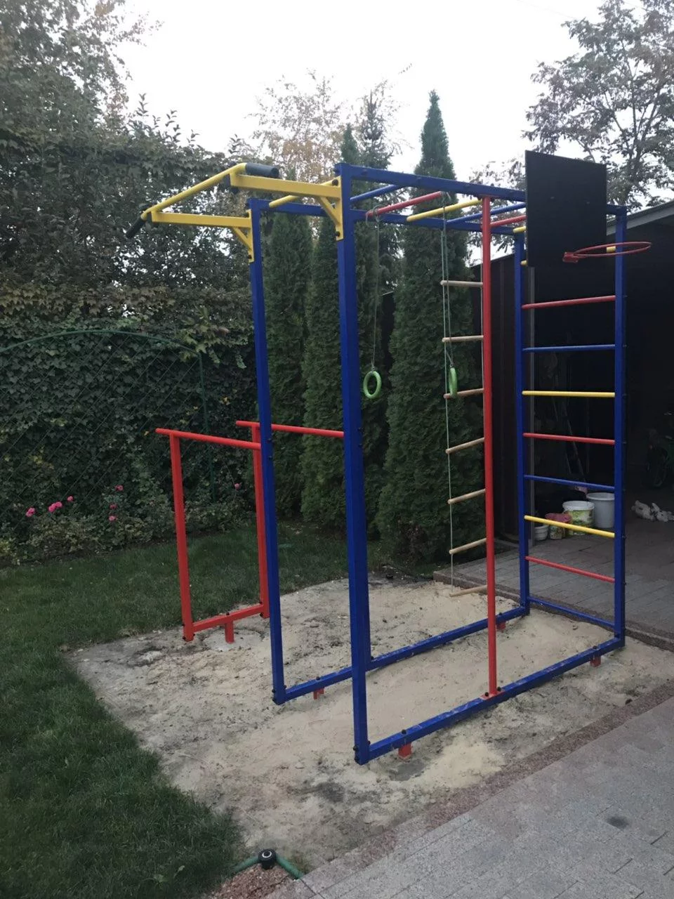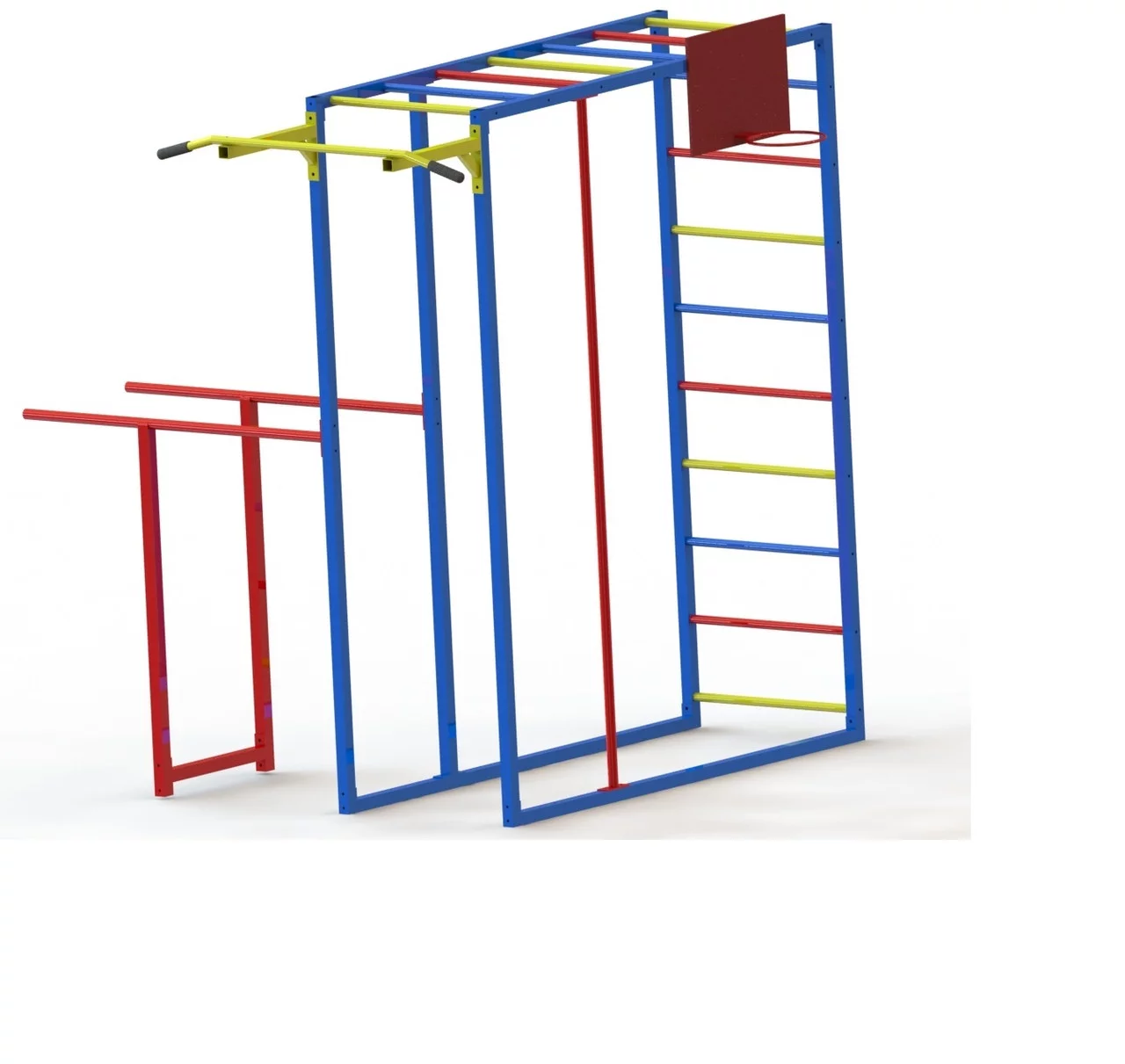Комплектація: шведська стінка, рукохід, турнік, бруси, шест, баскетбольне кільце, комплект кріплень для зборки та для бетону.