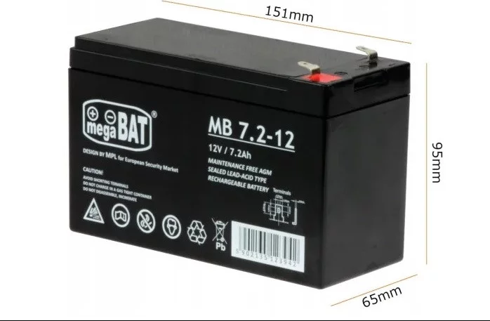 Акумулятор (NP7.2-12) володіє збільшеною потужністю, тривалим терміном служби та потребує мінімального технічного обслуговування. Завдяки багаторічному досвіду використання, високий рівень якості батареї є підтвердженим фактом