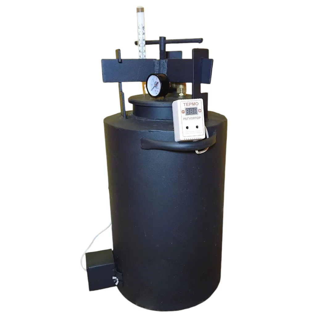Автоклав Гвинтовий Електричний "TOP-44Е" є найбільш доступним варіантом зі всієї лінійки автоклавів, тому що він найкомпактніший і виготовлений із звичайного (чорного) металу. Однак, він фактично не поступається за якістю і терміном служби автоклавам з нержавіючої сталі, тому що в місцях найбільш схильних до зносу товщина металу досягає 10 мм.