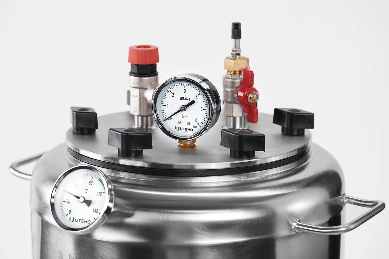 Автоклав побутовий “А24” ㅡ це сучасний пристрій для стерилізації та консервування. Він призначений для нагрівання від зовнішнього джерела тепла та чудово підходить для використання в домашніх умовах. Автоклав обладнаний аварійним клапаном ㅡ це робить процес консервування безпечним.