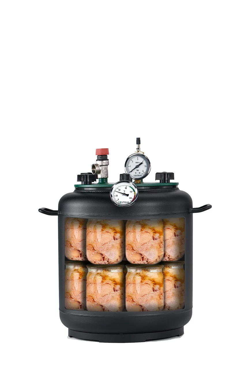 Автоклав побутовий “УТех-16” ㅡ це сучасний пристрій для стерилізації та консервування з чорного металу. Він призначений для нагрівання від зовнішнього джерела тепла та чудово підходить для використання в домашніх умовах. Автоклав обладнаний аварійним клапаном ㅡ це робить процес консервування безпечним.