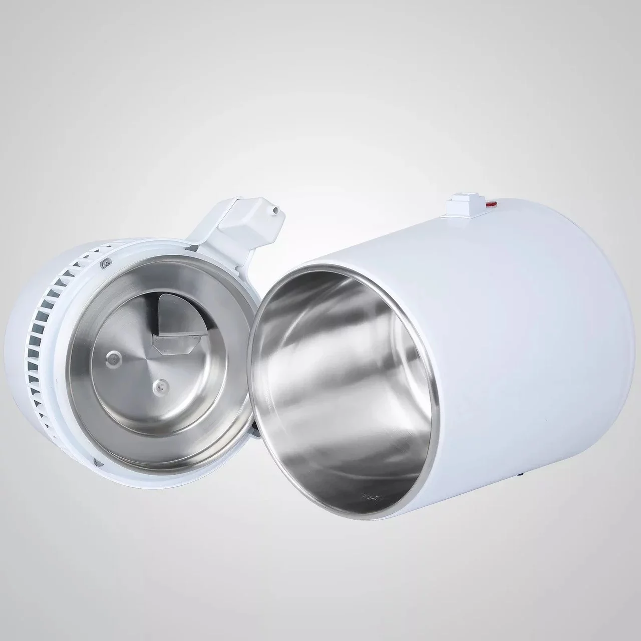 Пристрій для приготування дистильованої води потужністю 750 Вт зі швидкістю понад 0,34 галона / 1,3 л на годину видаляє більшість домішок водопровідної води, таких як розчинені тверді речовини та багато інших забруднення. Ми рекомендуємо вам міняти вугільний фільтр один раз на тиждень при частому використанні дистилятора.