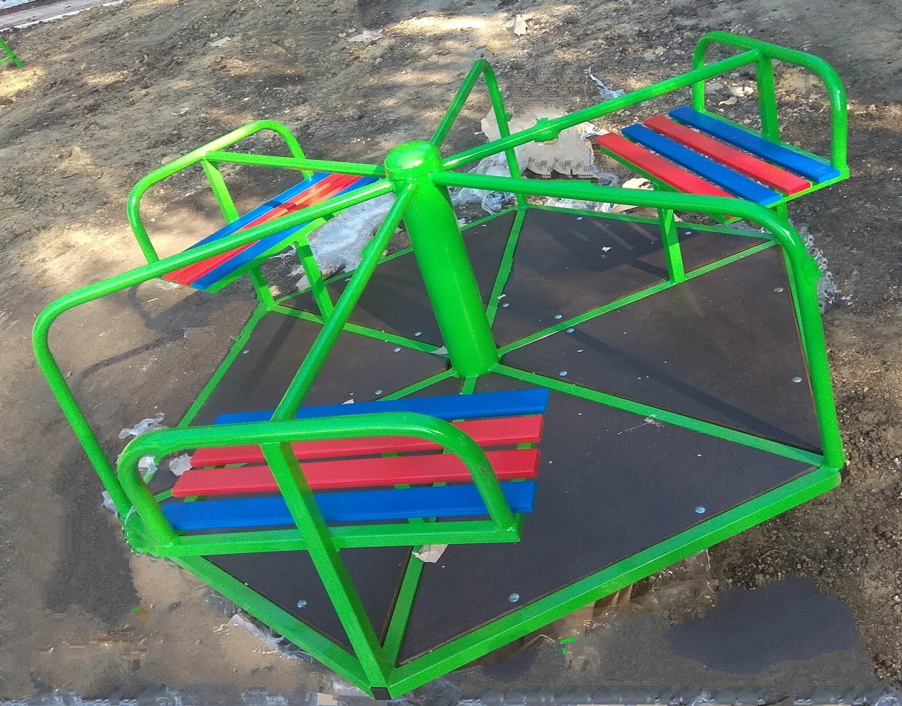 Дитяча Карусель для вулиці. Спеціальні кріплення бетонуються в грунт, а опори каруселі прикручуються до них.