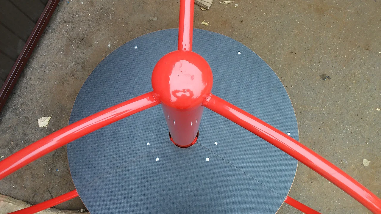 Закладные бетонируются в грунт, а основание карусели прикручивается к ним. При необходимости можно снять всю конструкцию на время, а затем установить на прежнее место (например, на даче).
