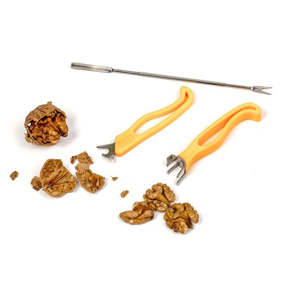 У комплекті зібрано найнеобхідніше для дбайливої колки горіха, доколу шкаралупи та вилучення ядра – горіхокол Лускунчик сталь, набір для розбору горіха та інструмент для вилучення ядра.