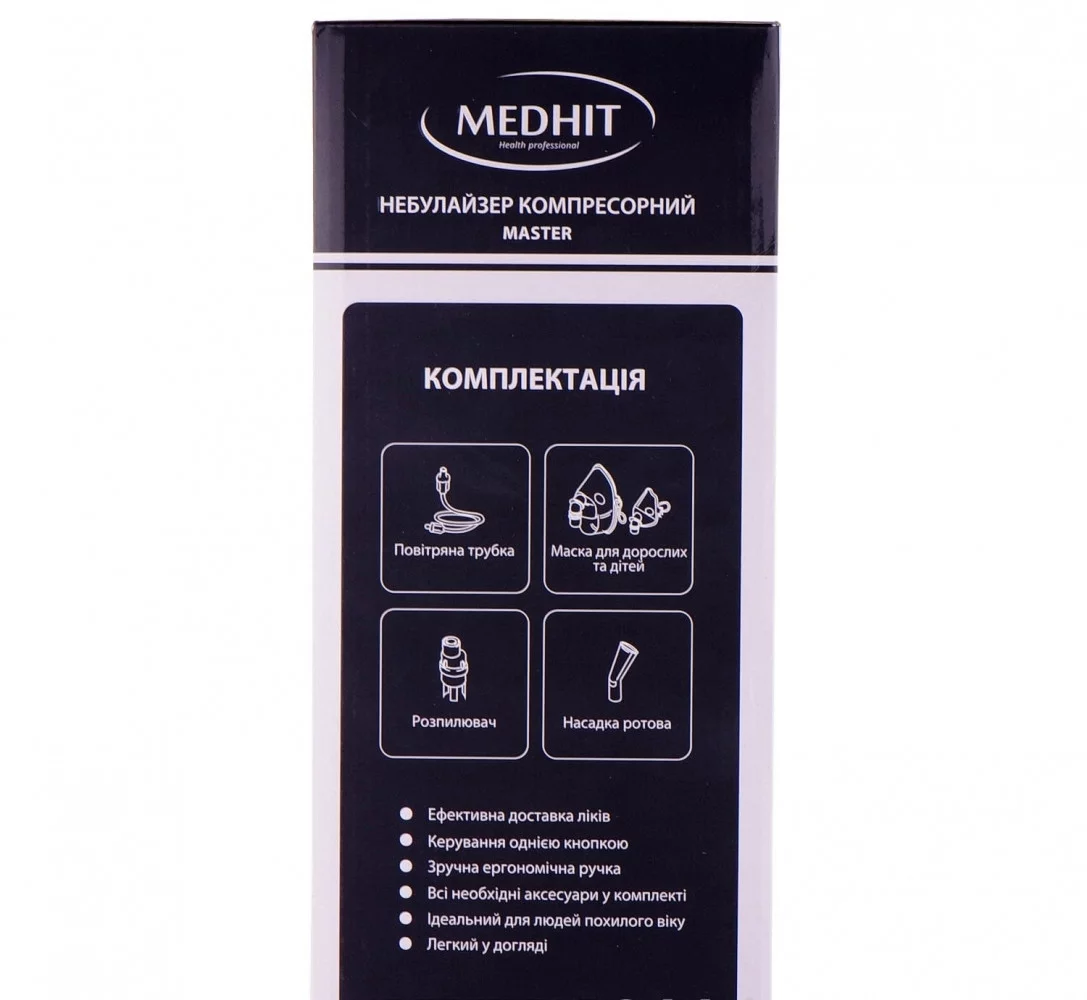 Компресорний інгалятор (небулайзер) MEDHIT MASTER призначений для використання під час лікування астми, ХОБЛ (хронічна обструктивна хвороба легень) та інших респіраторних захворювань, у яких потрібно застосовувати аерозольний препарат під час терапії.