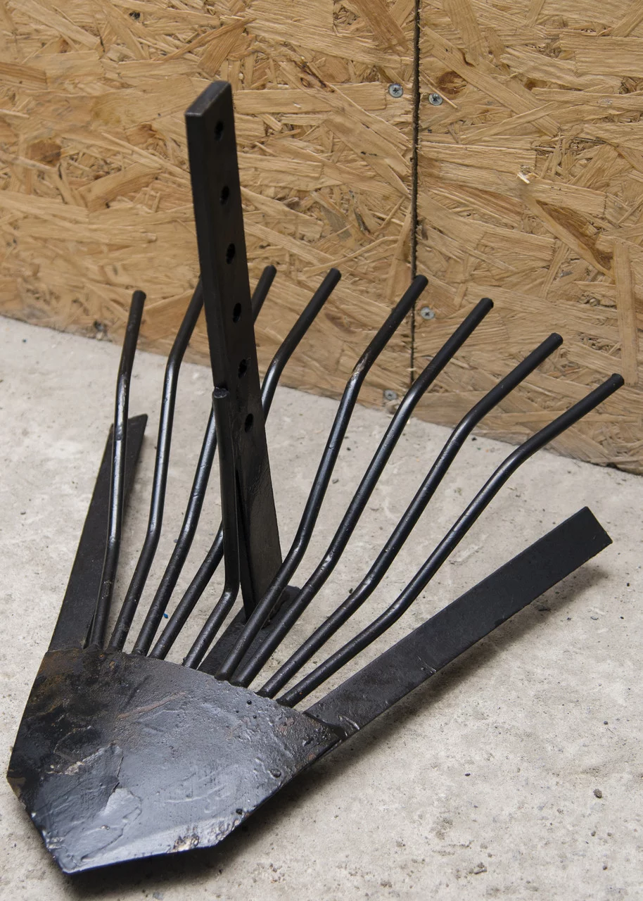 Також копалка має підошву. У задній частині пакети є пір'я. Зубці виготовлені зі сталевого стрижня 10 мм.