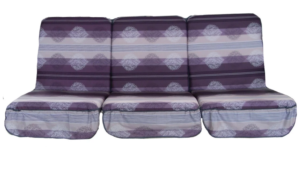 Комплект подушок для садової гойдалки ТМ "GreenGard", розміром (Ш*Д*В) 1680*1120*80 мм. Комплект складається з 3 окремих подушок, спинка та сидіння кожної пошиті між собою. Використана тканина — бязь щільністю 130 г/м. Склад тканини: 70 бавовни/30 синтетики. Наповнювач — поролон завтовшки 80 мм. Тканинний чохол легко знімається для прання.