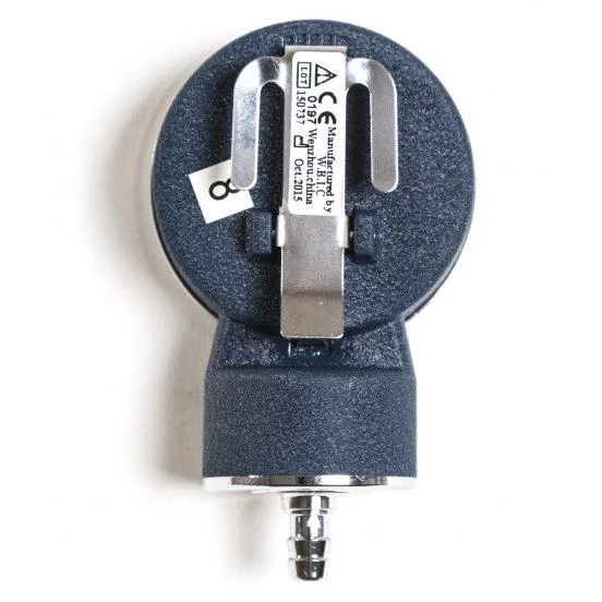 Манометр металевий, з чіткою шкалою, з кріпленням-застібкою на задній стороні.
