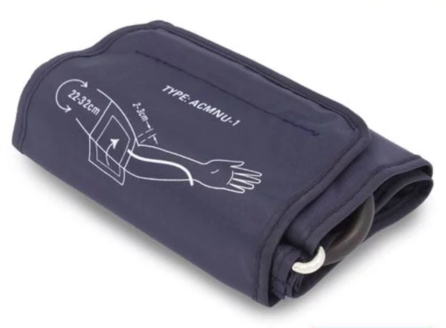 Манжета з пневмокамерой, хорошої якості, стандартного розміру (22-32 см) в нейлонова з металевим кільцем, з однією трубкою. Підходить для автоматичних та напівавтоматичних тонометрів будь-яких виробників.