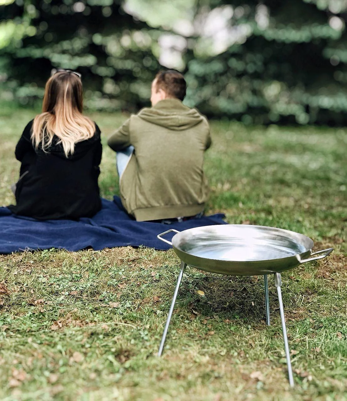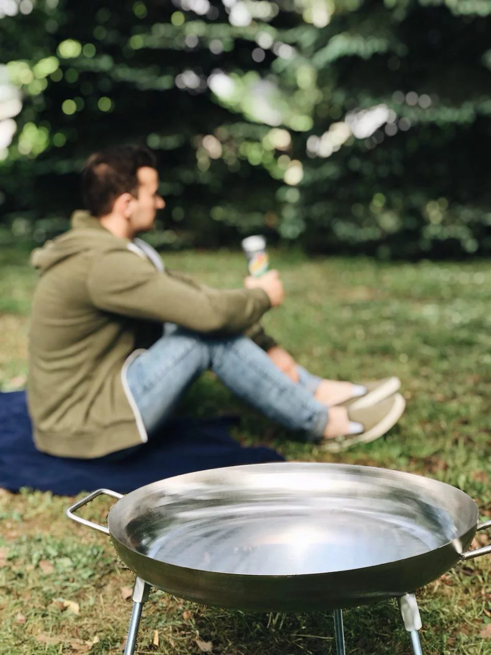 Ви знаєте, що на пікніку можна приготувати рагу, будь-яку страву з гриль меню, підсмажити м'ясо або рибу з овочами, втілити складні рецепти та водночас отримати достатній об'єм готової їжі, щоб нагодувати всіх мешканців? Допоможе в цьому зручна сковорода диск із неіржавкої сталі. Вона набагато зручніше, легше та компактніше барбекю і мангалу та збирається за кілька хвилин: досить приєднати ніжки.
