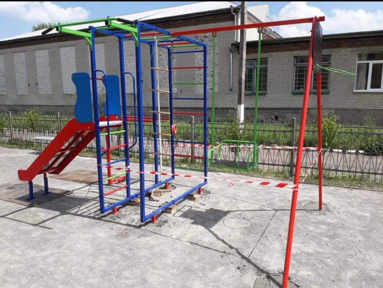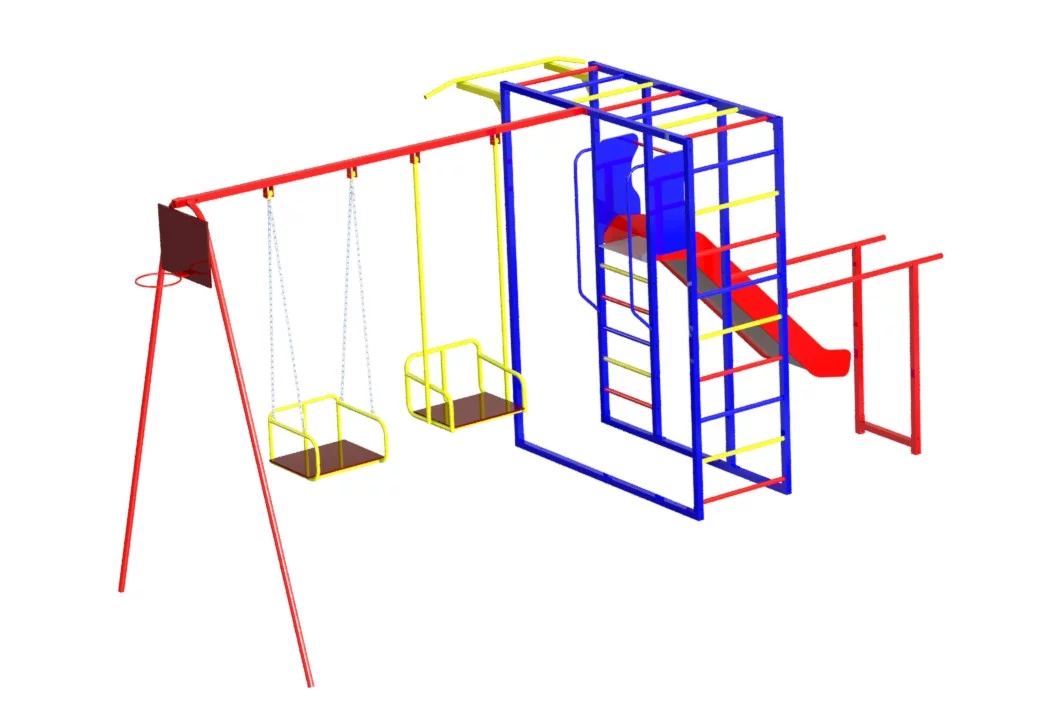 Комплекс спортивно-ігровий з гіркою і двома гойдалками, вуличний.