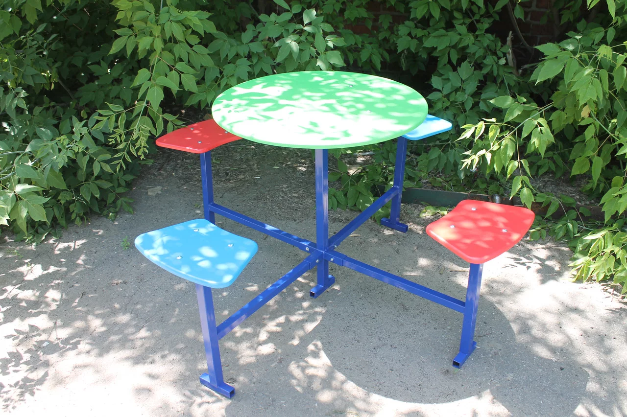 Матеріал: металева конструкція, сидіння - вологостійка пофарбована фанера.