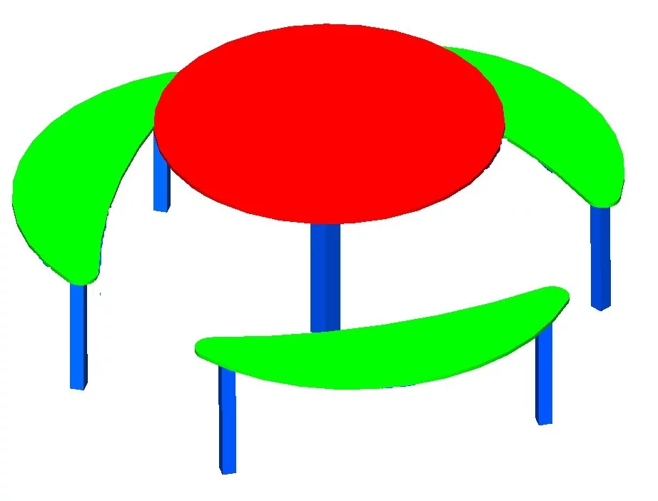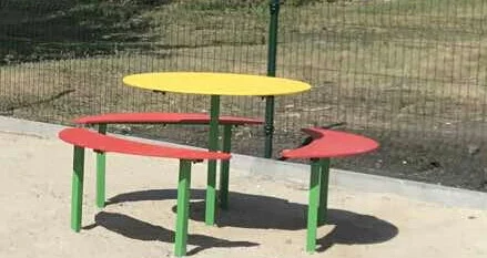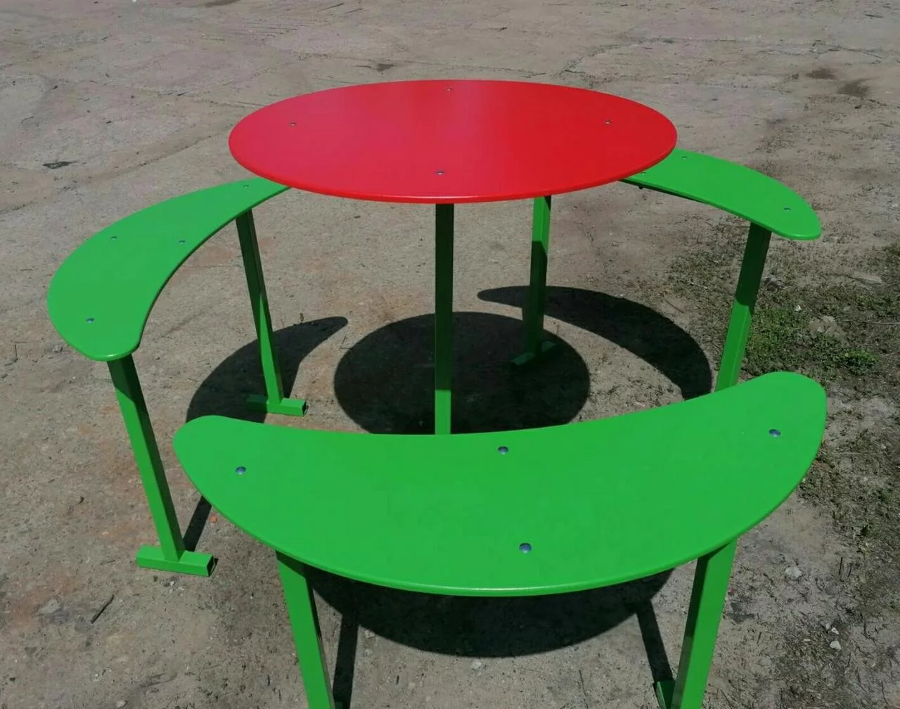 Параметри: діаметр столу 90 см, розмір сидіння 100 * 30 см, висота стільчика з урахуванням бетоніровки 50 см.