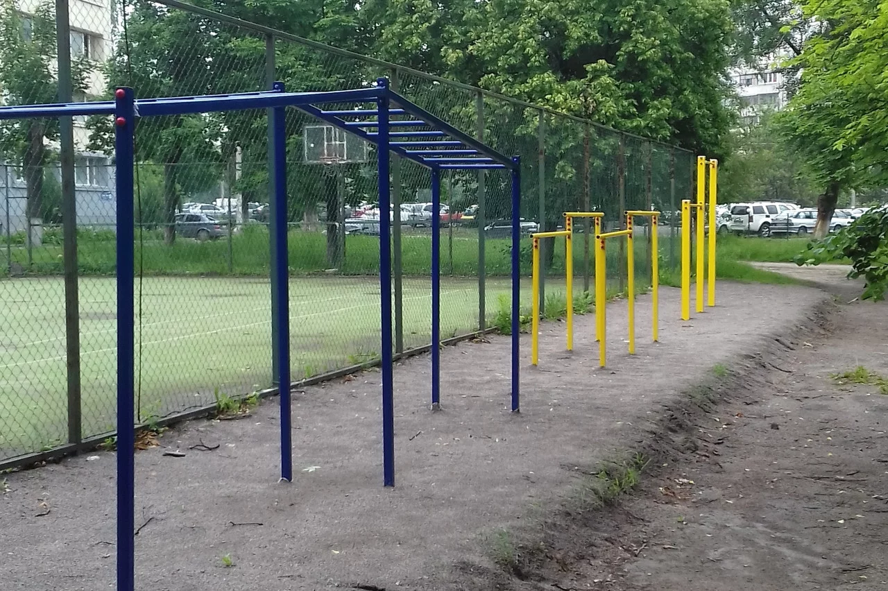 Матеріал: металеві стійки - профіль 60х60 х 3, турнік - труба діаметром 34 мм