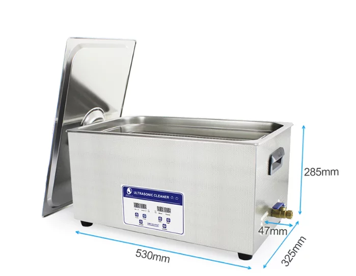 Технічні характеристики ультразвукової ванни роблять її придатною як для професійного, так і для домашнього застосування. Максимальна ульразвуковая частота становить 40 000 Hz. Резервуар виготовлений із нержавіючої сталі SUS304. Саме цей матеріал знайшов широке застосування в медицині і харчовій промисловості. Об'єм резервуара становить 22000 мл. Одночасно можна очищати предмети загальною вагою до одного кілограма. Ви можете встановити таймер на час від 1-30 хвилин, за допомогою кнопок на панелі.