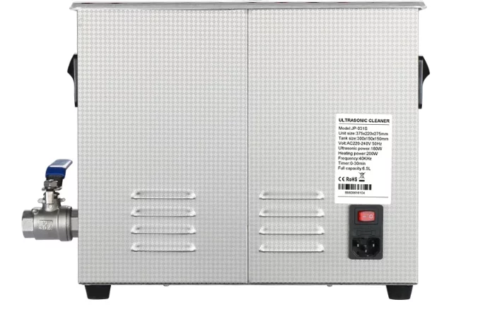Технічні характеристики ультразвукової ванної роблять її придатною як для професійного, так і для домашнього застосування. Максимальна ульразвукова частота становить 40 000 Hz. Резервуар виготовлений із неіржавкої сталі SUS304. Саме цей матеріал знайшов широке застосування в медицині та харчовій промисловості. Об'єм резервуара становить 6500 мл. Одночасно можна очищати предмети загальною масою до одного кілограма. Встановити таймер ви можете на час від 1-30 хвилин за допомогою кнопок на панелі.