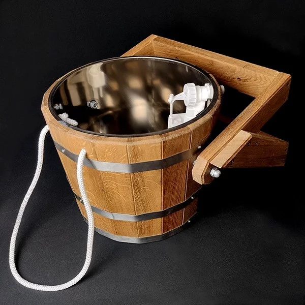 Дубове відро-водоспад для лазні та сауни із вставкою із нержавіючої сталі поєднує в собі естетику класичного дерев'яного виробу з практичністю завдяки вставці з нержавіючої сталі. яка вимагає менше догляду для підтримки належного стану. Вставку з нержавіючої сталі набагато простіше помити, метал не буде так сильно покриватися пліснявою.