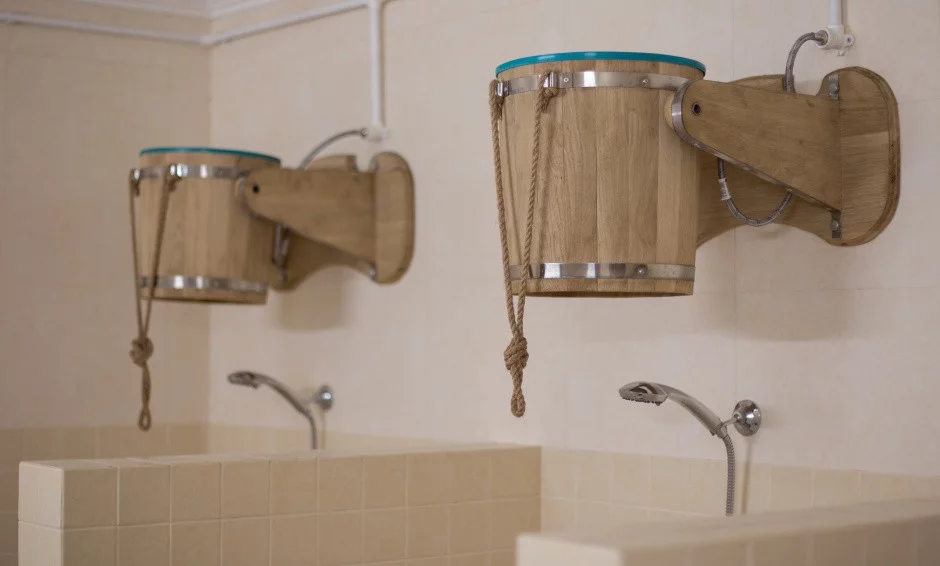 Відро-водоспад — це система, яка особливо актуальна для саун і лазень з обмеженим невеликим простором. Немає кращого завершення лазневої процедури, ніж зануритися в крижану або просто прохолодну воду. Але як бути, якщо немає басейну або проруби з крижаною водою, а спорудити купель немає можливості?