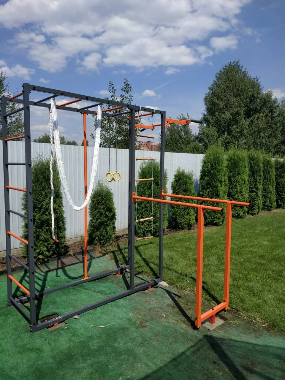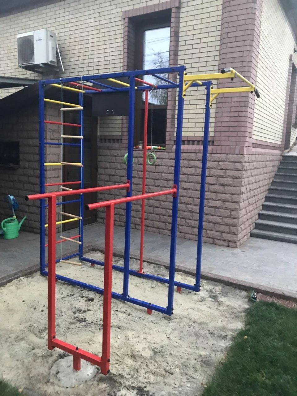 Комплектація: шведська стінка, рукохід, турнік, бруси, шест, баскетбольне кільце, комплект кріплень для зборки та для бетону.