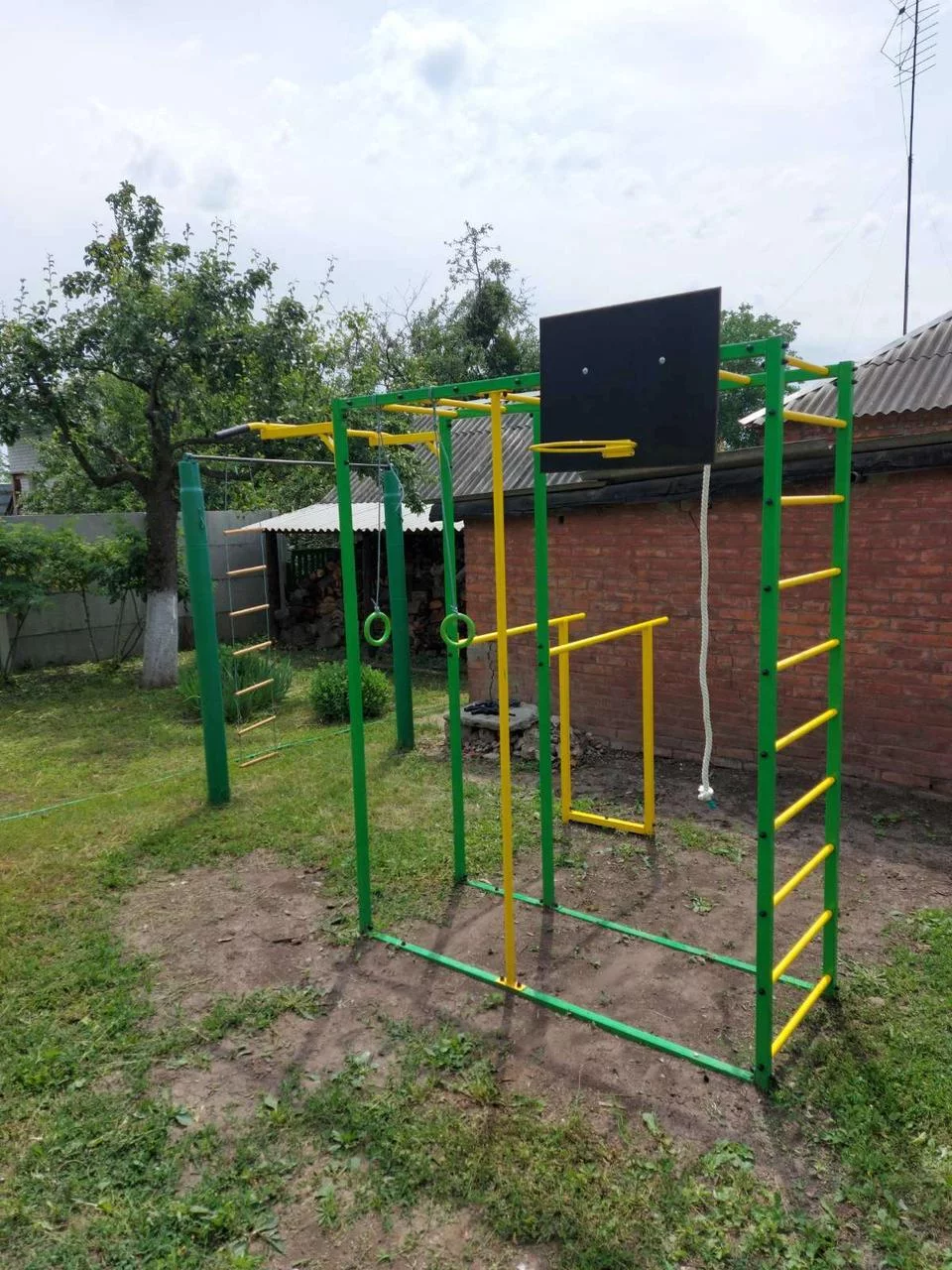 Матеріал: металеві стійки та металеві перекладини, турнік з прорезиненими ручками.