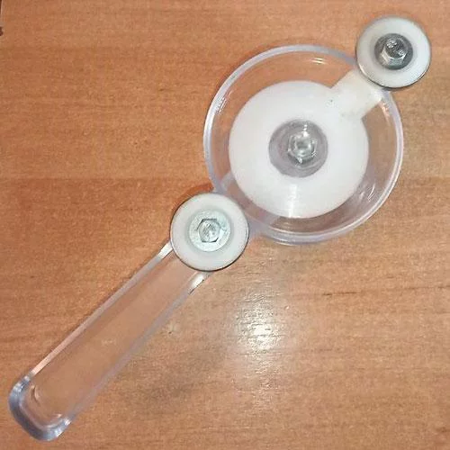 | ролик з полімерного матеріалу із зовнішньою коронкою з нержавіючої сталі, завдяки чому забезпечена легкість обертання, виключена ймовірність сколювання кромки скляних банок | ролик металевий, що може призводити до сколювання кромки банки, а також заклинювання при закатуванні |