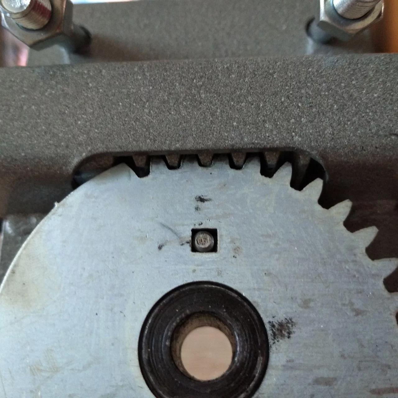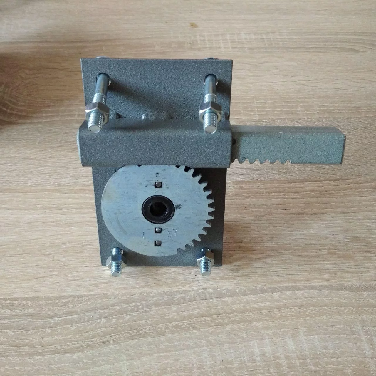 Виліт засуву замка відбувається за один повний оборот і становить 70 мм, для гаражних замків величина вильоту засуву дуже важлива. Рух засуву наводиться шестернею. На шестірні є зубці, на засові замка зачепи, при взаємодії відбувається відмикання або замикання замка. У закритому положенні рух засуву заблоковано.
