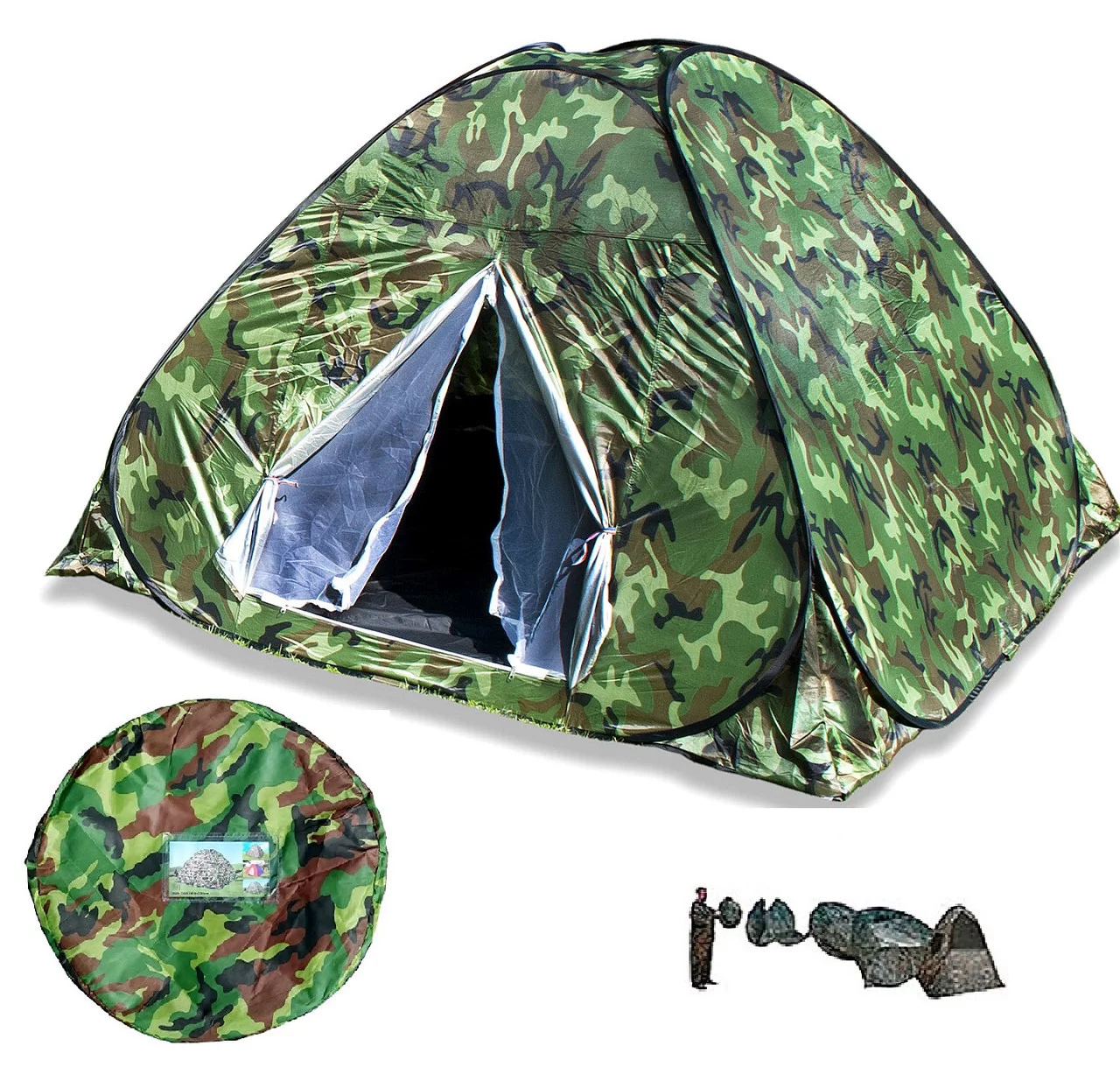 Зручна практична 4-х місцева самораскрывающаяся намет може застосовуватися як взимку так і влітку. Основна відмінність від інших наметів, це закрите дно,
